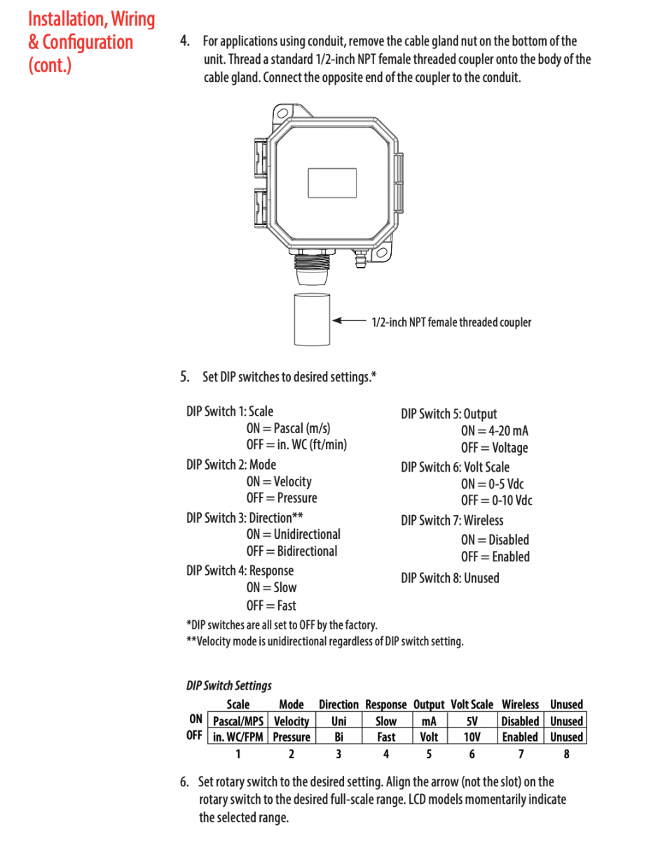 Dải đo linh hoạt: từ ±0.1"WC đến ±25"WC (inch water column)