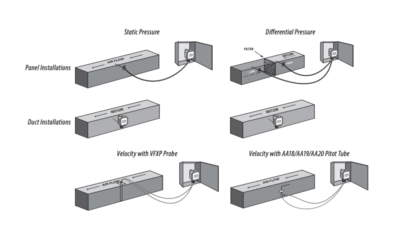 Giải pháp đo chênh lệch áp suất khí khô của Veris thường bao gồm: